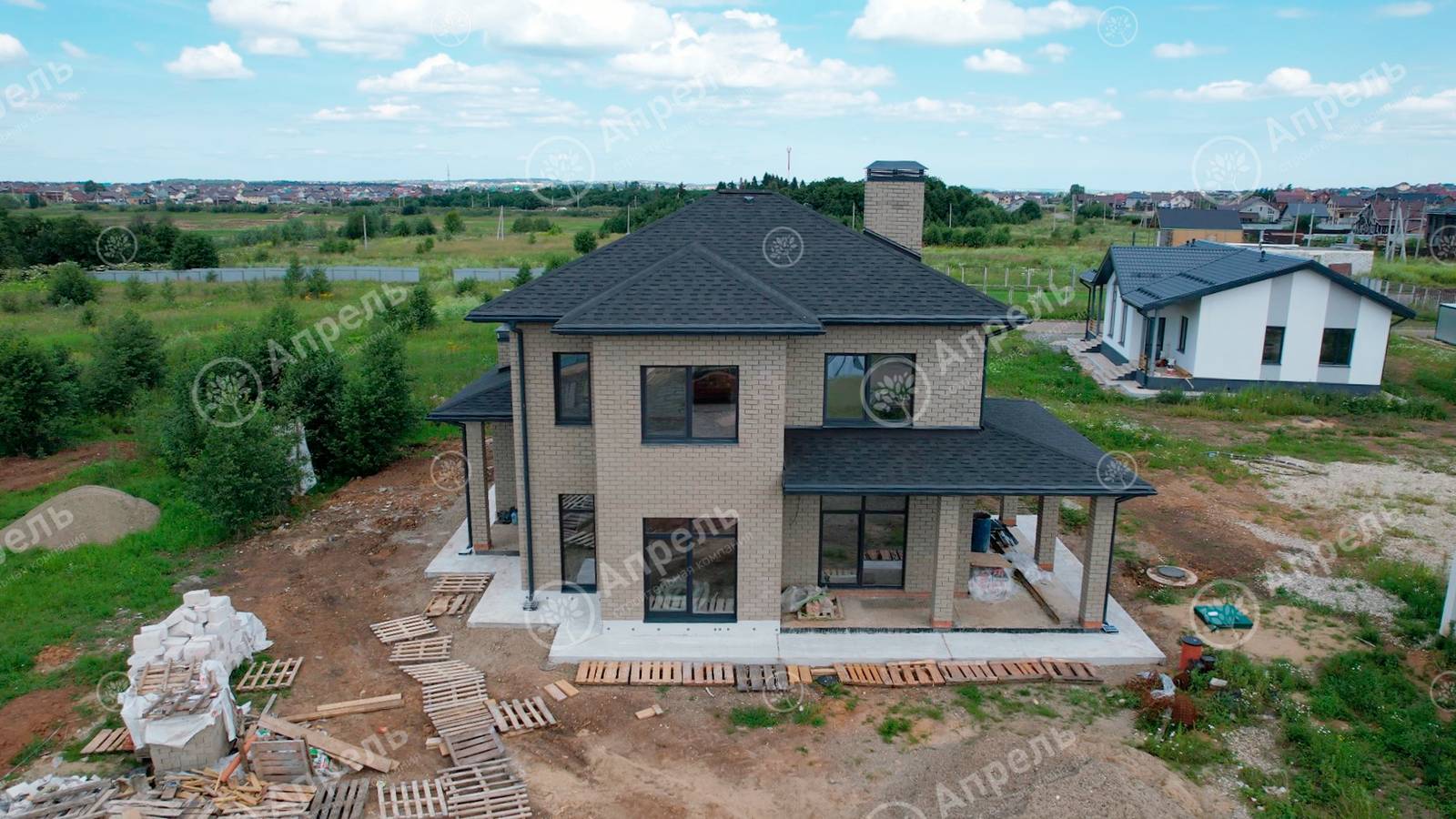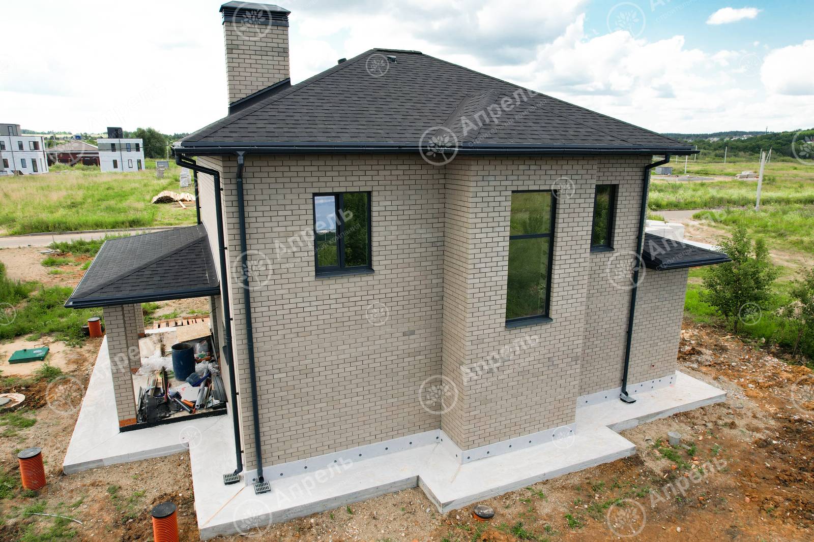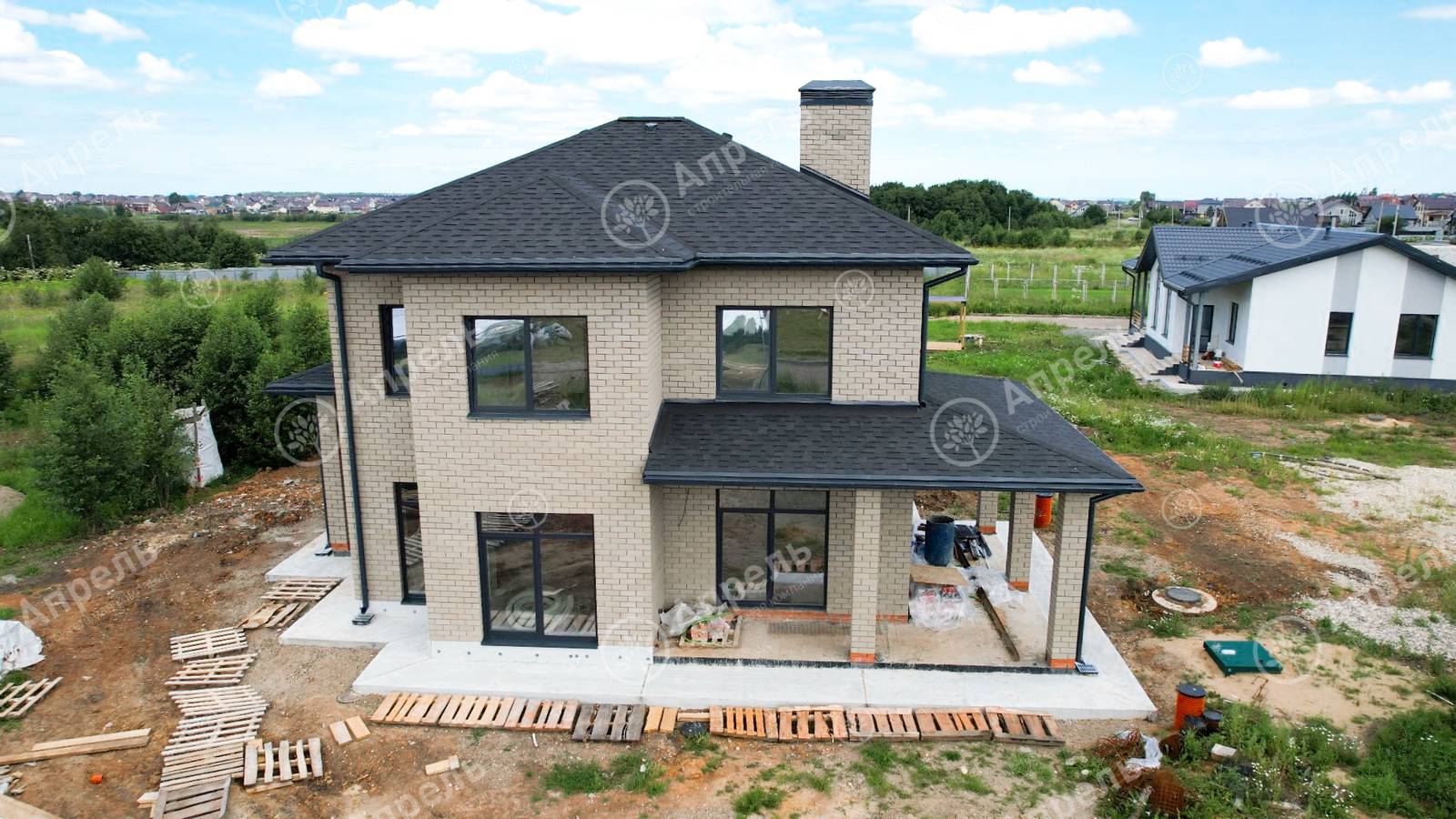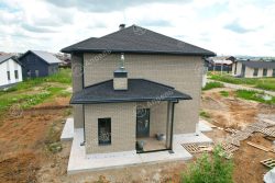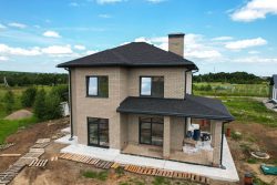 В этом доме 3 спальных комнаты, кухня-гостиная и 2 санузла. Капитальные стены из газобетонных блоков. Фасад дома из керамического кирпича марки 200. Дом с крытой террасой, сауной и двумя большими санузлами.
