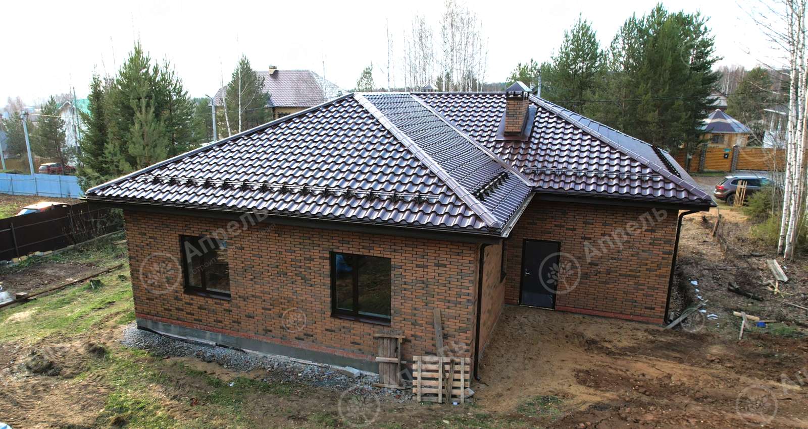 В этом доме 3 спальных комнаты, кухня-гостиная и 1 санузел. Капитальные стены из газобетонных блоков. Фасад дома из клинкерного кирпича с черным швом. Дом с большим гаражом, интегрированным в общую площадь.