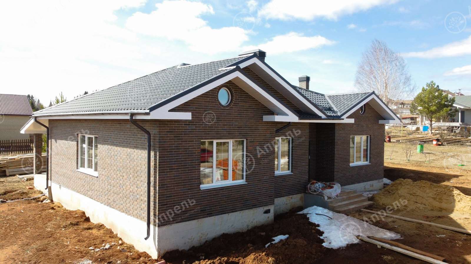 В этом доме 3 спальных комнаты, кухня-столовая, гостиная и 2 санузла.  Капитальные стены из газобетонных блоков. Фасад дома из клинкерного кирпича с цветным швом. Дом с гаражом и террасой на задний двор.